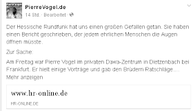 Das sieht Pierre Vogel wieder einmal ähnlich. Er bestimmt einen erkrankten Guido Westerwelle als Organisator, gegen den der Clan der Salafisten seine Todeswünsche und seinen Hass ausgesprochen hat.