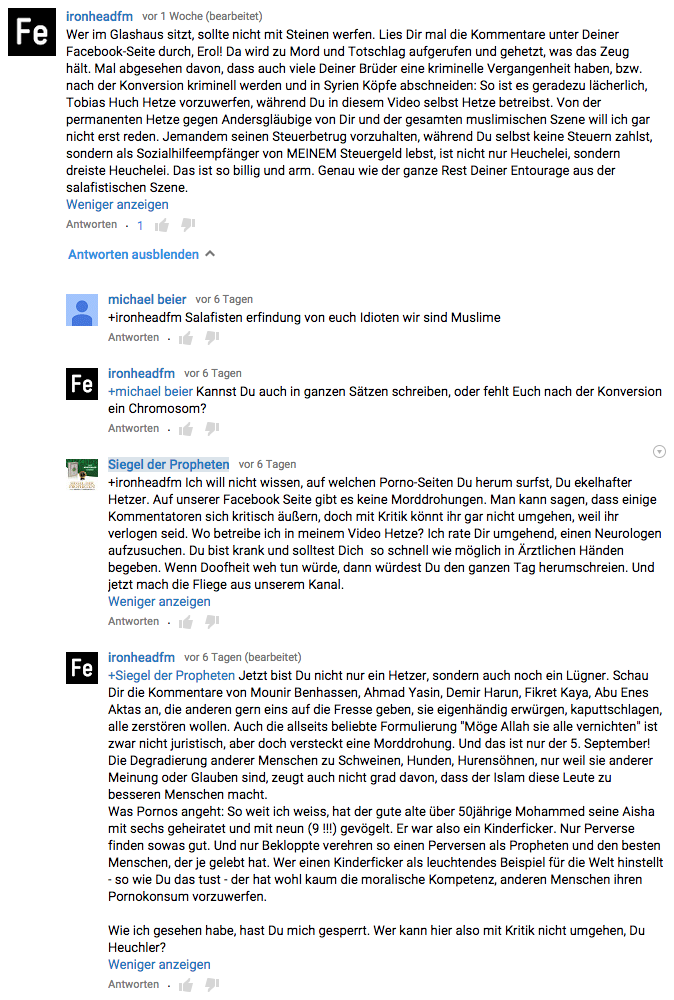 Immerhin nimmt sich Erol Selmani Zeit, freundlich die Schönheit des Islams seinen youtube-Kommentatoren näherzubringen: